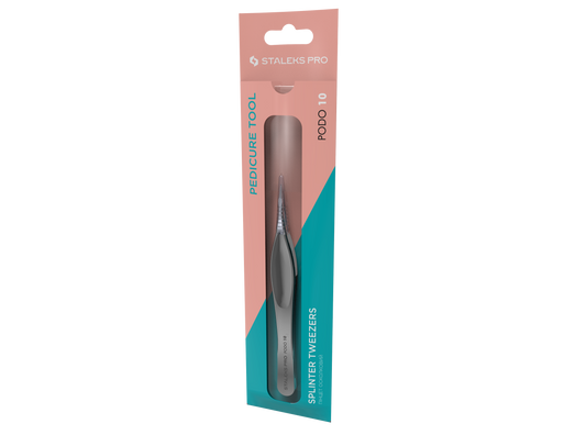 - Staleks Pedicure Splinter Tweezers (TP-10) Voor het verwijderen van ingegroeide nageldelen - Eelt onder de nagel, fragmenten van de opperhuid, nagelweefsel - Vreemde voorwerpen uit wonden en nagelplooien - Dun, lang werkgedeelte - Goede grip aan de uiteinden en over het gehele werkgedeelte - Ligt comfortabel in de hand dankzij de ergonomische vorm van de handgrepen - Soepele en vloeiende beweging van het pincet - Duurzaam, roestbestendig roestvrij staal - Extra corrosiebestendigheid door polijsten met GOI-pasta - Geschikt voor alle soorten sterilisatie en desinfectie