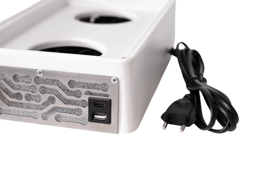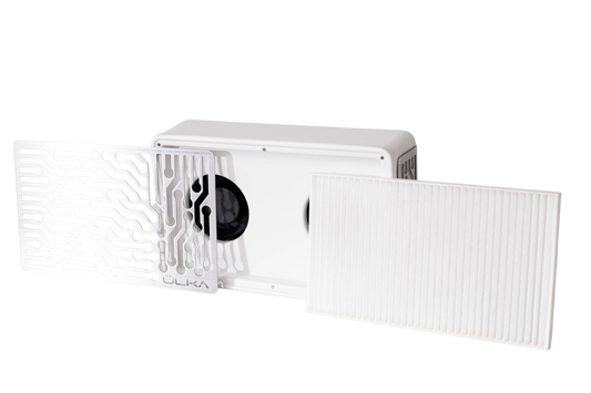 Op zoek naar een stof afzuiger die stabiele zuigkracht levert en uw salon veilig maakt met schone lucht? De Ulka Nano stofafzuiger is de beste keuze voor professionele salons en studio's die waarde hechten aan kwaliteit, gemak en hygiëne. De ÜLKA Nano is ontworpen voor nagelstylisten die dagelijks met stof werken en volledige controle willen over de luchtkwaliteit. Deze Ulka Nano Dust Collector focust op wat er voor jou het belangrijkst is, ook al heb je geen professionele salon! De compacte, stootvaste behuizing is ontworpen voor intensief dagelijks gebruik zonder jouw werkplek te overladen. Dankzij de geïntegreerde Type-C en USB-poort kan je jou telefoon of andere apparaten opladen zonder extra stroomadapters, denk hier bijvoorbeeld aan een portable e-file of als service het opladen van een smartphone van uw klant. Deze functie maakt het werk gemakkelijker, als nagelstylist hoef je niet langer op zoek te gaan naar extra stroombronnen voor je apparaten, waardoor je niet meer onderbroken kan worden tijdens je behandeling en alle benodigde tools op één plek beschikbaar zijn. Dit energiezuinige model met twee krachtige ventilatoren en poorten voor het opladen van mobiele apparaten is twee keer zo krachtig als vergelijkbare stofafzuigers met stofzak en werkt met een laag geluidsniveau. Het dubbele ventilatorsysteem genereert een luchtstroom van 3,5 m/s en vangt, samen met het HEPA-filter, tot 99,9% van het stof op dat vrijkomt tijdens het vijlen van BIAB nagels, gel en acrylnagels. Dit vermindert de stofophoping op handen, gereedschap en oppervlakken aanzienlijk, minimaliseert de schoonmaaktijd en beschermt uw luchtwegen. Het geoptimaliseerde geluidsniveau zorgt voor comfortabel gebruik tijdens lange werkdagen zonder geluidsvermoeidheid te veroorzaken. Kortom een krachtig, handig en prachtig vormgegeven stof afzuiger. De ÜLKA Nano is een professionele stof afzuiger, speciaal ontwikkeld voor de moderne salons! De Ulka Nano Nagel Stof Afzuiger + HEPA Filter heeft 5 jaar garantie.