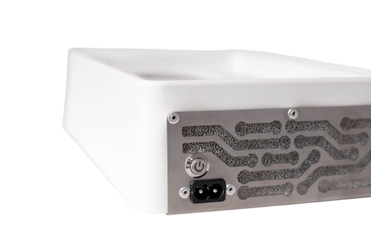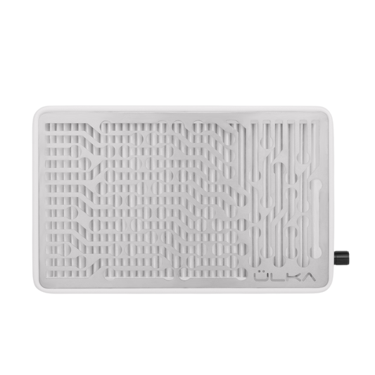 - ÜLKA Nano Tafelmodel nagel stof afzuiger - Zeer krachtige dust collector door dubbel ventilatorsysteem - Ingebouwde Type-C/USB-poorten voor het opladen van apparaten - Tot 99,9% stofafvang met HEPA-filtratie - Veilig voor klanten en nailtech met allergieën - Geoptimaliseerd geluidsniveau voor lange werkdagen - Geschikt voor BIAB, gel- en acrylsystemen - Energiezuinige stof afzuiger met laag geluidsniveau - Compacte, stootvaste behuizing - Universele stofafzuigingssysteem voor manicure en pedicure - Uitgerust met stijlvol magnetisch rooster - Soepele, traploze vermogensregeling - Geluidsniveau 85 dB - Vermogen 58 Watt - Zuigsnelheid 3.5 m/s - Afmetingen 18 x 29 x 7.6 cm - Gewicht 1,2 kg - Leverbaar in de kleuren zwart, wit of grijs - Garantie 5 jaar (60 maanden)*