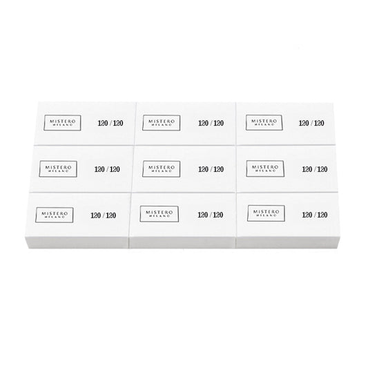 Deze Mistero Milano Polijst Block 120/120 9 stuks (7000) hebben een delicate coating met een grit van 120. De delicate coating maakt het blokje zacht en minimaliseert het risico op beschadiging van de huid en het vijlen van de natuurlijke nagelplaat. Deze polijst blokvijl 120/120 wordt veel gebruikt bij het effen vijlen van kunstnagels of om de natuurlijke nagelplaat mat te maken. De blokvijlen zijn gemaakt van extreem duurzaam Koreaans schuurpapier en hebben de beste prijs-kwaliteit verhouding.
