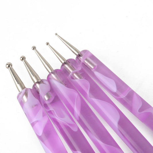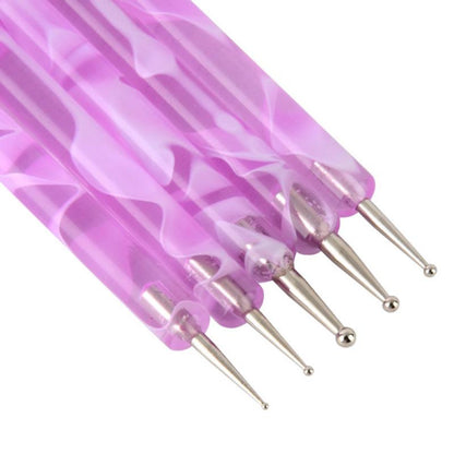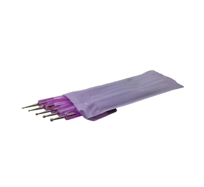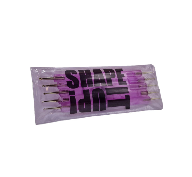 Shape It Up Nail Art Dotting Tools kopen? Dotting tool kopen? Nail art dotting tool nodig? Op zoek naar een dotting tool voor het maken van nail art? Deze set van vijf tweezijdige Shape It Up Nail Art Dotting Tools zijn speciaal ontworpen voor het aanbrengen van nail art. Deze paarse marble dotting tools zijn gemaakt van metaal en hebben twee verschillende puntgrootte voor het maken van nail art stippen, het teken van een french manicure of het aanbrengen van nagelstickers of strass steentjes op nagels. Deze dotting tools hebben allemaal een verschillende dikte. Door 5 verschillende dotting tools hoeft u niet meer mis te grijpen om de mooiste nail art effecten te maken!