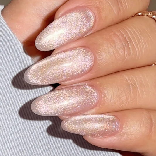 Champagnetinten vangen het licht als vloeibare zonneschijn en transformeren met een nagelmagneet tot stralende cat-eye-nagels. Maak je cat-eye nageldesigns af met Rubber Base en Extreme Shine Top Coat — perfect voor trendy cat-eye nail art.