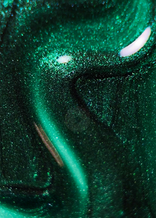 The GelBottle Pine is een bosgroene gelpolish met glinsterend effect en een feestelijke metallic gloed.